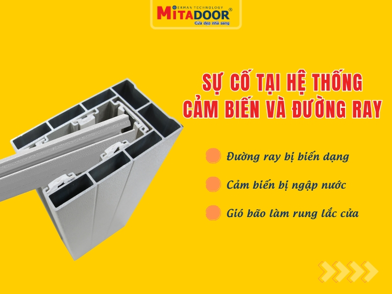 Sự cố tại hệ thống cảm biến từ và đường ray cửa cuốn