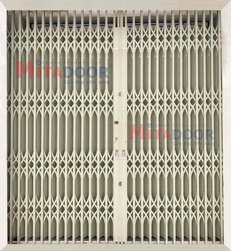 Cửa kéo thép sơn tĩnh điện công nghệ Đức của Mitadoor – Màu kem sần với thiết kế tinh tế, đảm bảo độ an toàn, chắc chắn