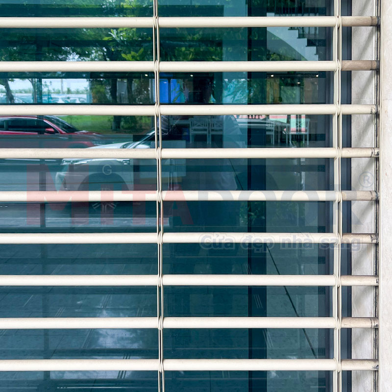 Thiết kế dạng song ngang không chỉ tạo ra các khe thoáng lớn giúp không khí và ánh sáng tự nhiên lưu thông dễ dàng, mà còn thấy được tầm nhìn xuyên suốt, rất lý tưởng cho các không gian cần trưng bày sản phẩm như showroom hay cửa hàng.