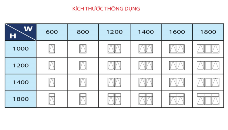Kích thước thông dụng của cửa sổ mở hất hệ nhôm Mitadoor cao cấp