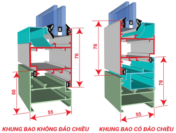 Khung bao không đảo chiều và Khung bao có đảo chiều của cửa sổ mở hất Mitadoor cao cấp
