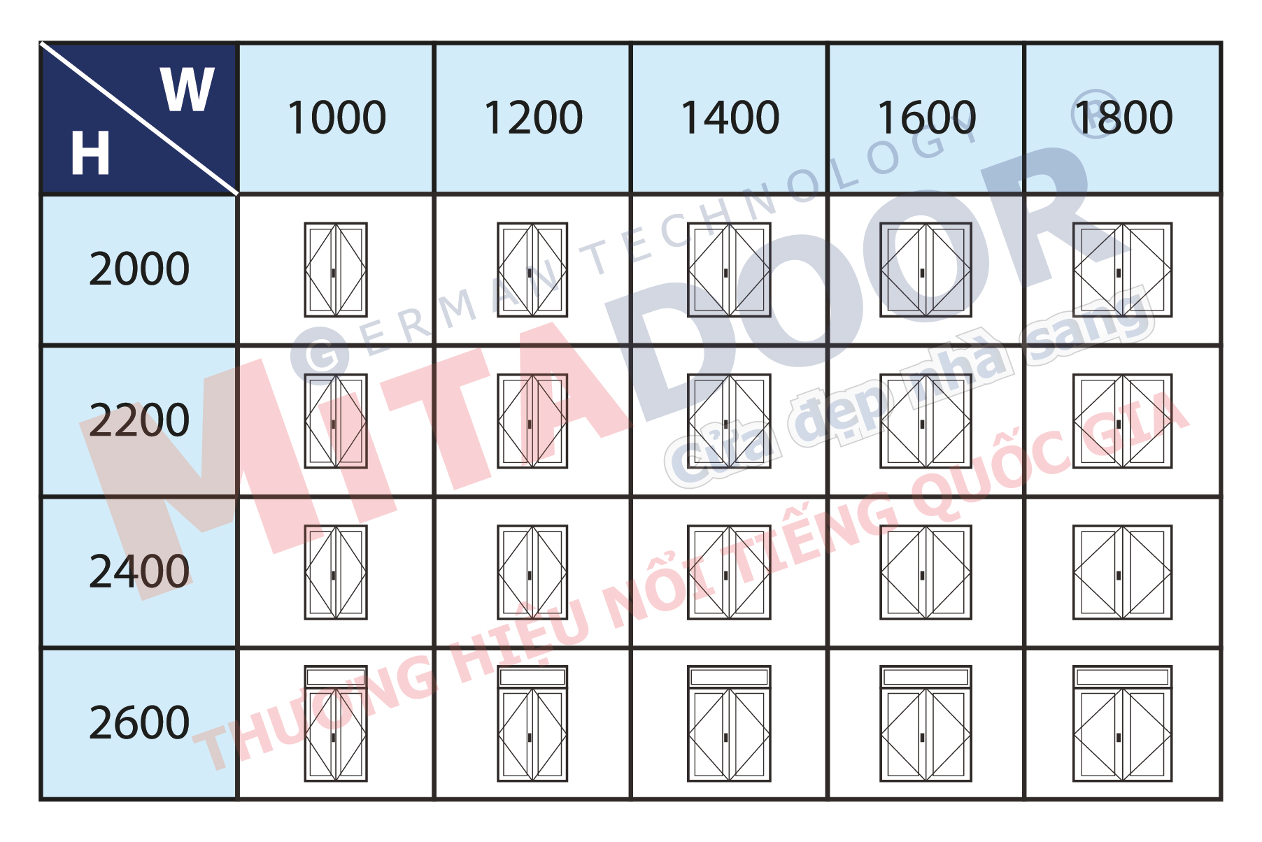 Kích thước thông dụng cửa đi mở quay hệ ST-53