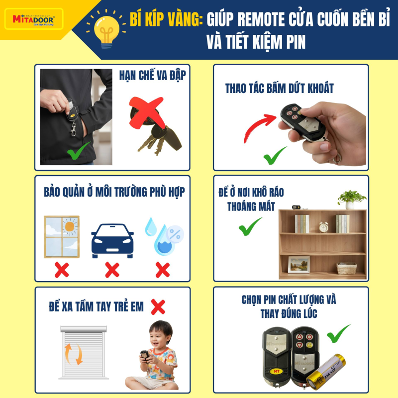 Chỉ với vài thói quen đơn giản, bạn đã nắm được cách sử dụng remote hiệu quả hơn rất nhiều, đồng thời giúp remote cửa cuốn luôn trong trạng thái ổn định tốt nhất!