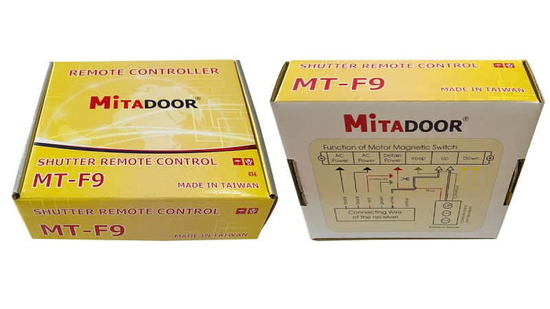 Bộ hộp Remote đồng bộ mang thương hiệu Mitadoor, mã hiệu MT-F9 (gọi tắt là F9), được sản xuất tại Đài Loan, có khả năng chống nước, chống dò tần số.