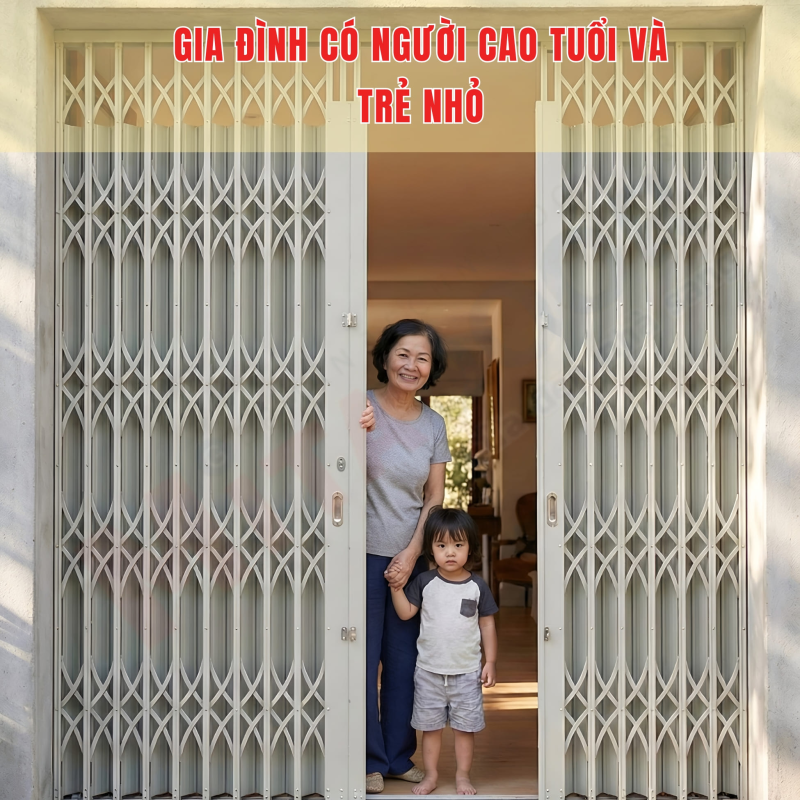 Người lớn tuổi và trẻ nhỏ đều sử dụng cửa kéo dễ dàng