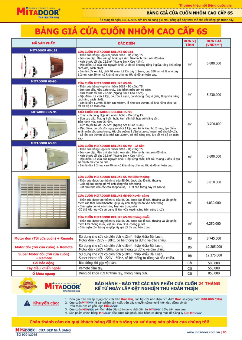 Bảng giá Cửa cuốn tốc độ cao Mitadoor 6S-90