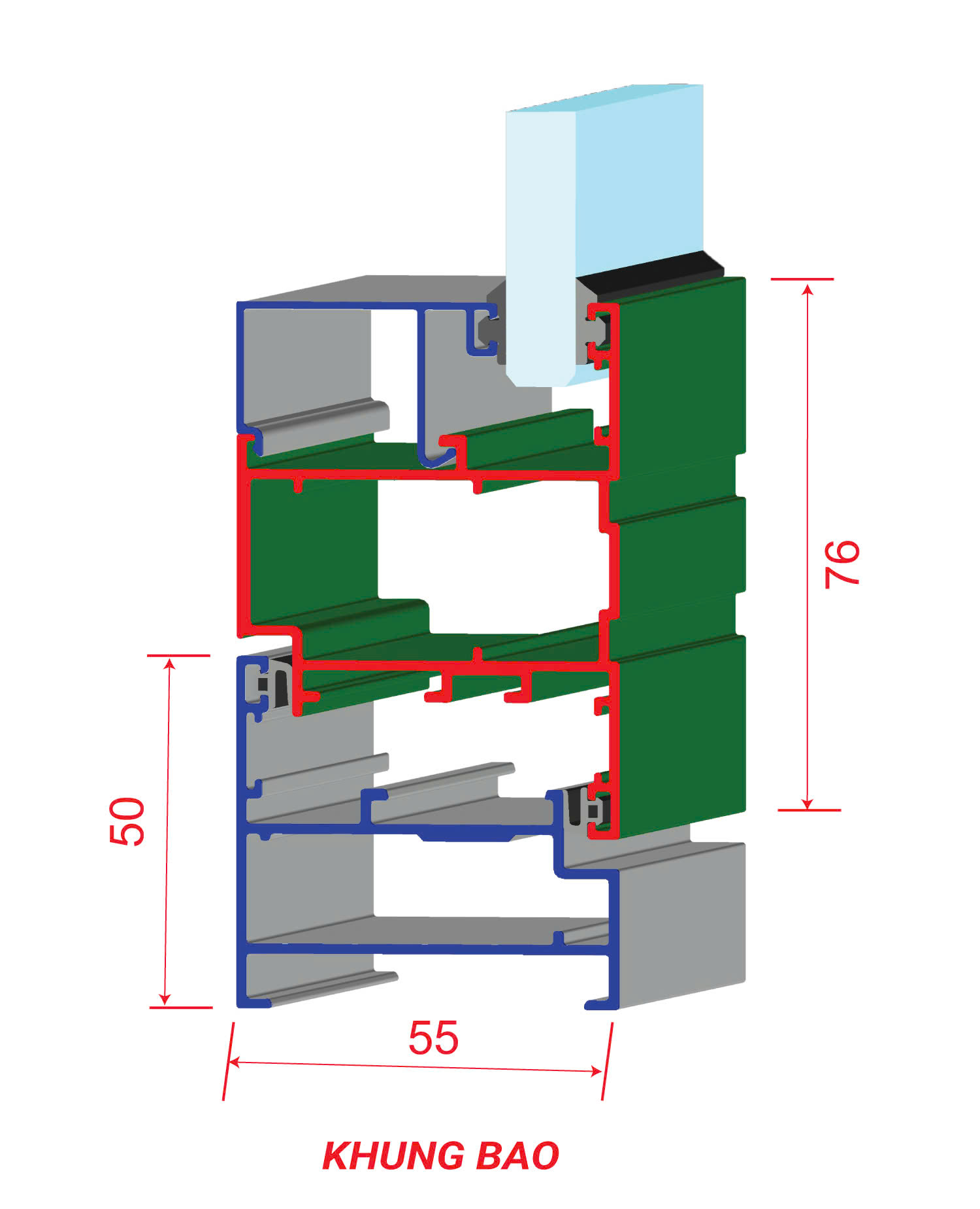 - Kết cấu khung nhôm có sóng gia cường, chịu được sự va đập khi đóng mở cửa.